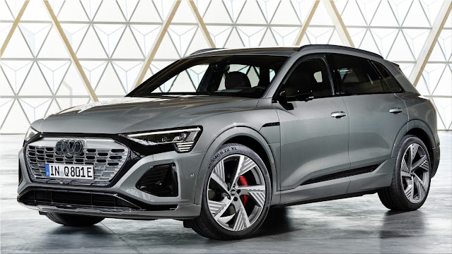 Audi has begun taking orders for the new Q8 e-tron, with prices starting at 79,900 euros excluding incentives and deliveries beginning in March 2023.This is the restyling of the model previously known as the e-tron, which maintains the availability of the double-body variant (Suv and Sportback) and significantly evolves both the design and the powertrains. The Q8 e-tron is therefore faithful to the outgoing model in general proportions, but modified light clusters and bumpers have made the line more aggressive and have made it possible to reduce the Cx up to 0.24 on the Sportback and up to 0.27 on the Q8 model e-tron. Wheels up to 22" long lengthen the sides, while the front is modernized with the debut of the four-ring logo characterized by the new two-dimensional graphics and accompanied by the model initials on the central pillar.